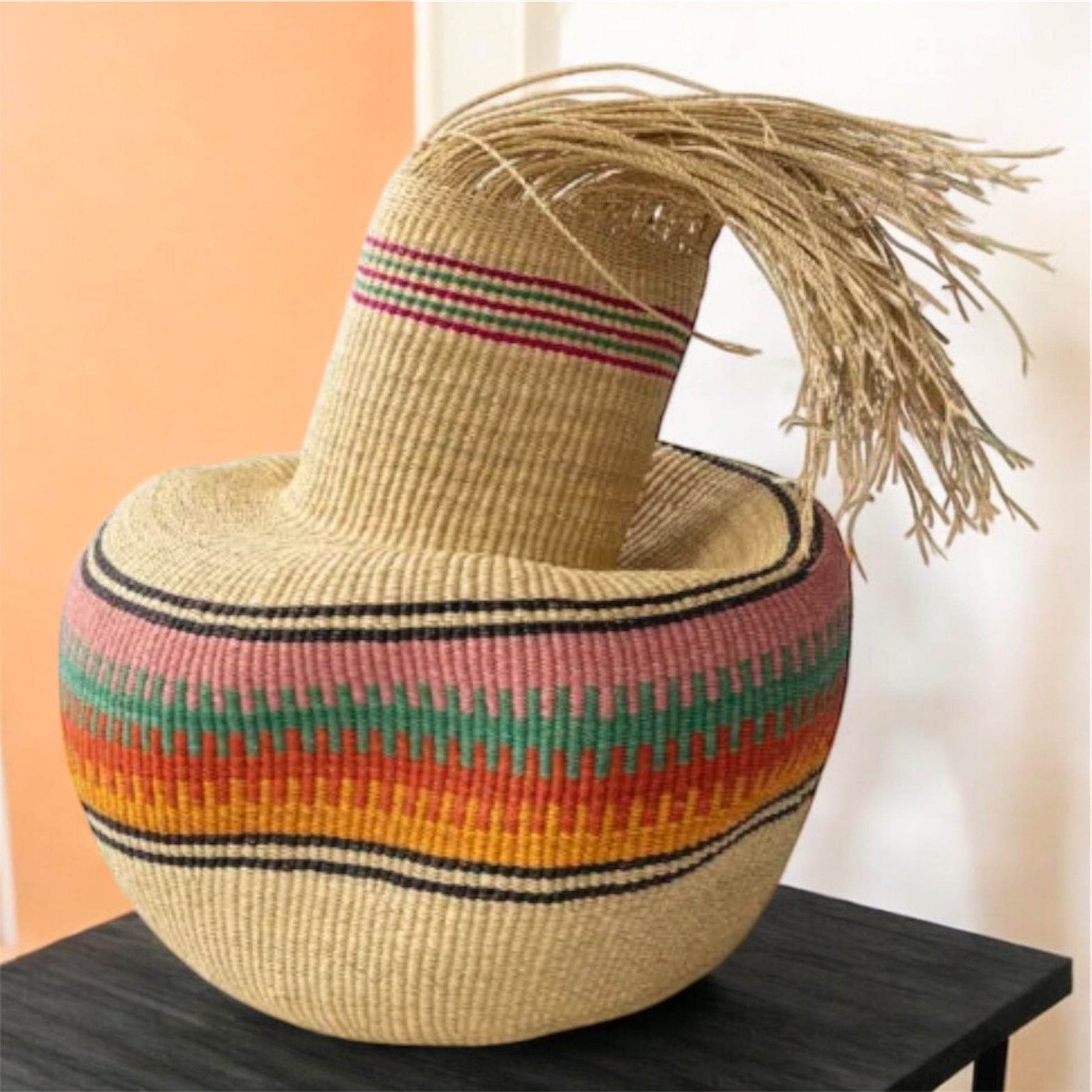 Each basket is carefully crafted by skilled artisans in Ghana, and every purchase helps support and uplift their communities.
