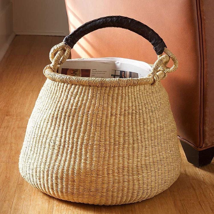 Our all-around handwoven baskets are stylish and functional, adding a natural vibe to just about any room. Display individually or pair it with other baskets for more impact. Each piece is fully handcrafted by artisans in Ghana, specifically the indigenous Gurune people of the town of Bolgatanga.