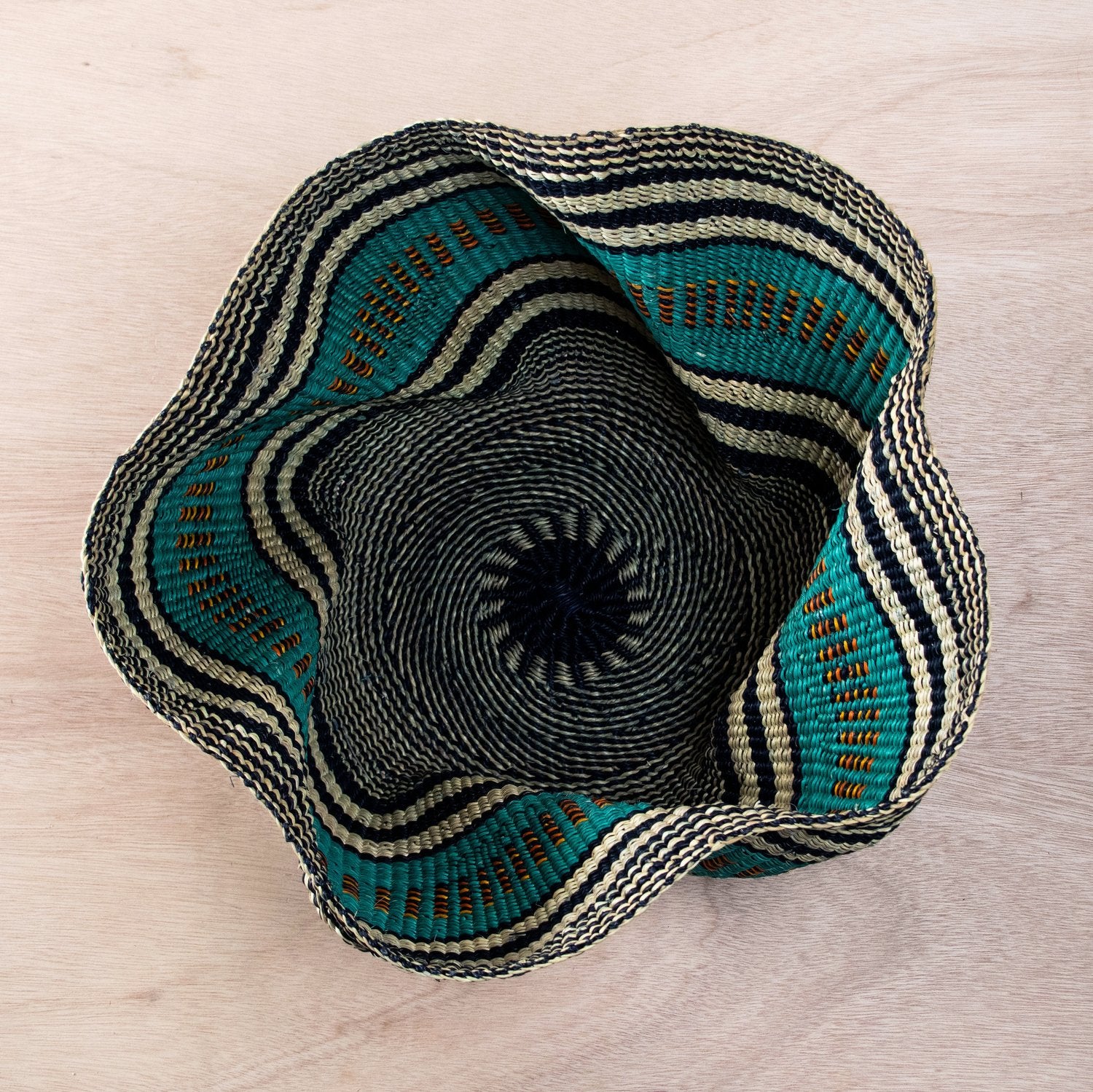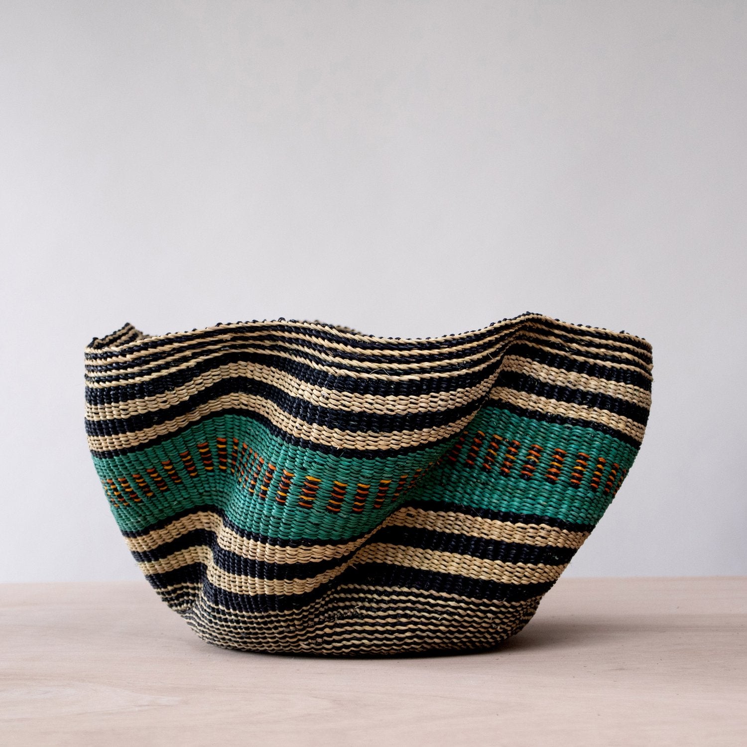 The Bandy Wave Bolga Basket is a vibrant and functional work of art, handcrafted by the indigenous Gurune people of Bolgatanga—the craft hub of Ghana. Traditionally used as colanders for separating millet from water, these baskets showcase exceptional weaving techniques passed down through generations.