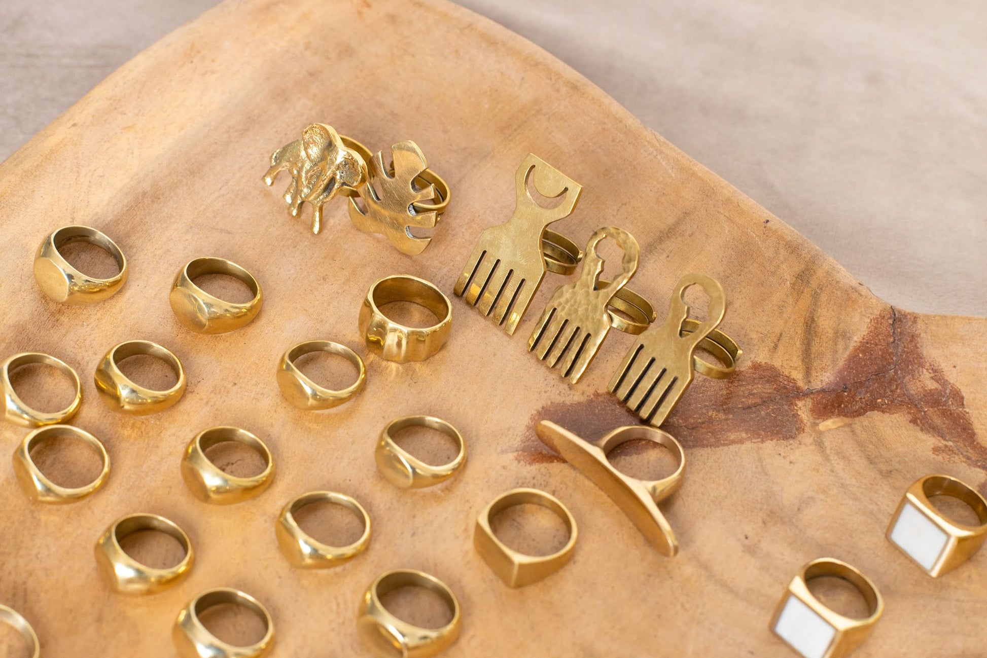 This ring is made in collaboration with our artisan partner, Shiku, who recycles discarded taps, old coins and brass casts that would have otherwise ended up in the junkyard. Sustainability and women empowerment is always our priority at Safi, we love working with female artisans and we love the concept of taking something forgotten and turning it into something beautiful and new.