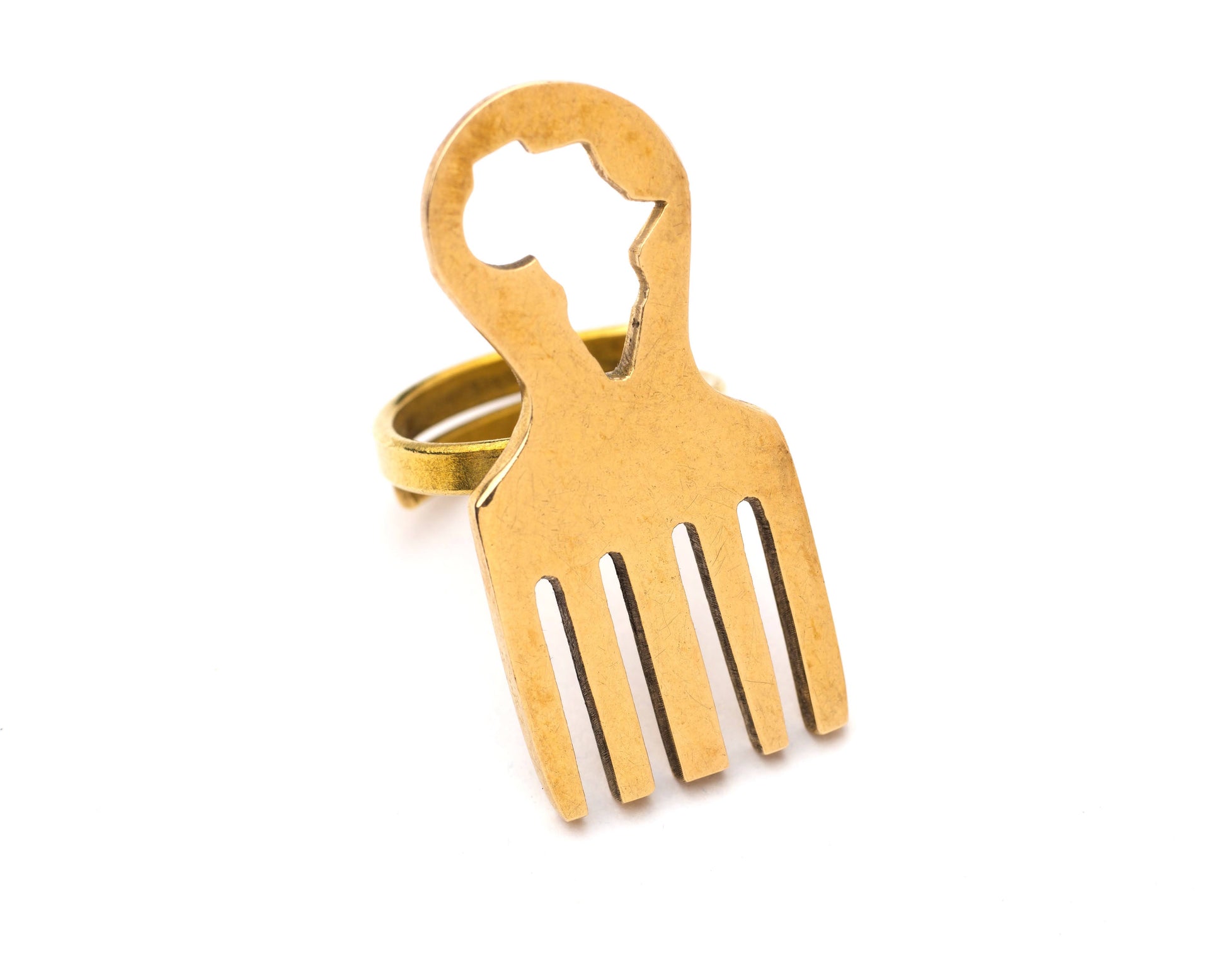 Inspired by the African culture and the Duafe symbol, which stands for femininity, love and care, the Afro comb ring was handcrafted with passion by our talented Kenyan artisan.