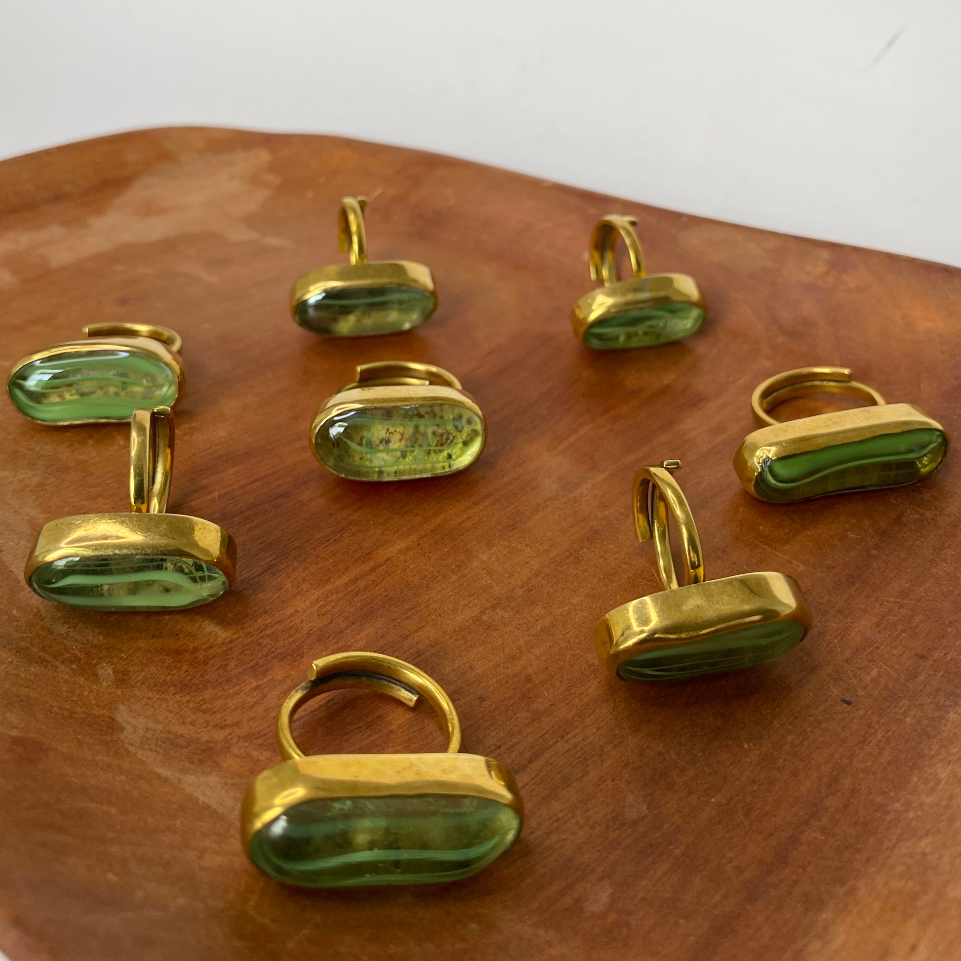 Green adjustable brass ring