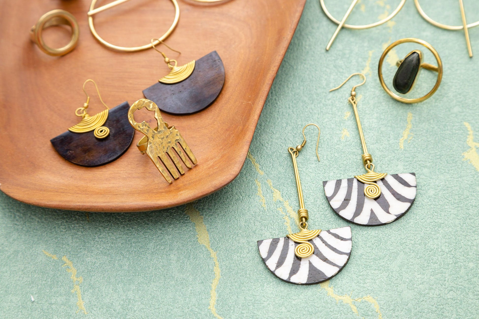 Handcrafted with incredible attention to detail, Vaya Drop earrings are handcrafted in Africa. Each piece is meticulously handmade with recycled brass. Wear these statement earrings with pride, knowing they improve the lives of artisans in Africa.