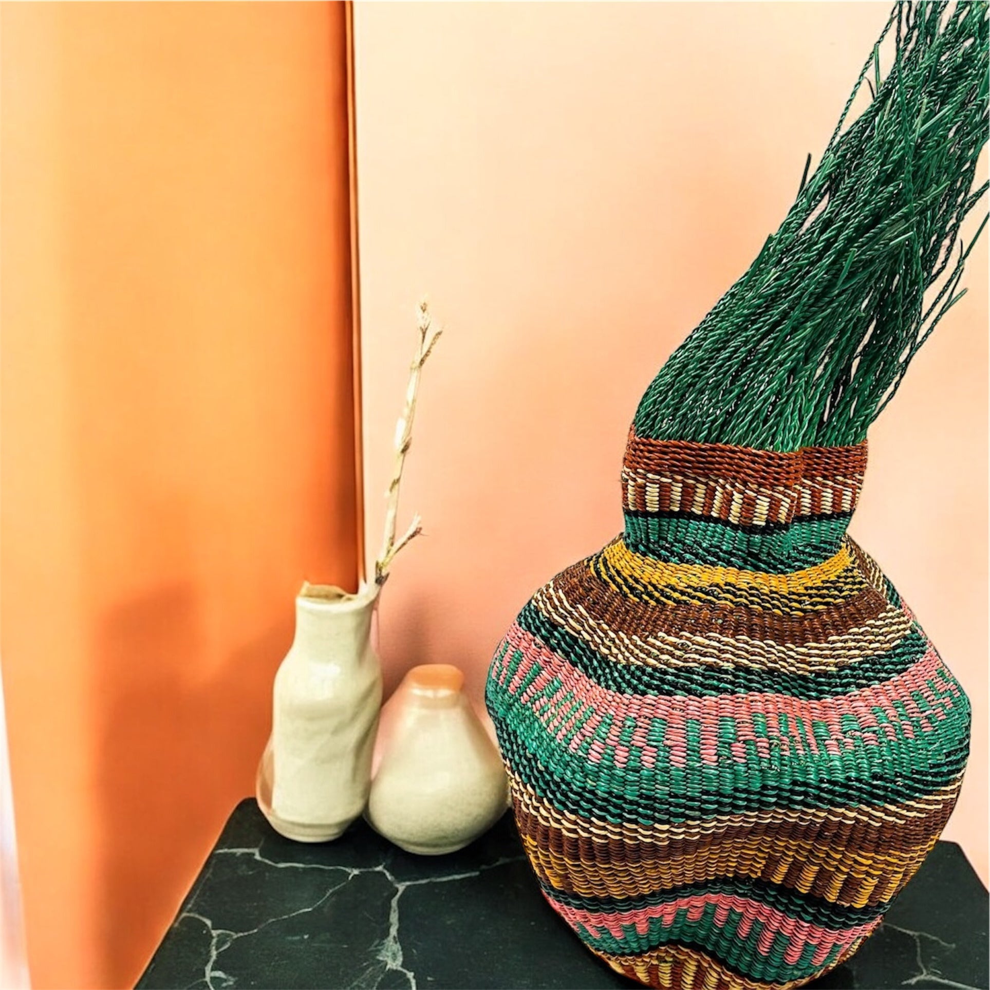 Each basket is carefully crafted by skilled artisans in Ghana, and every purchase helps support and uplift their communities.