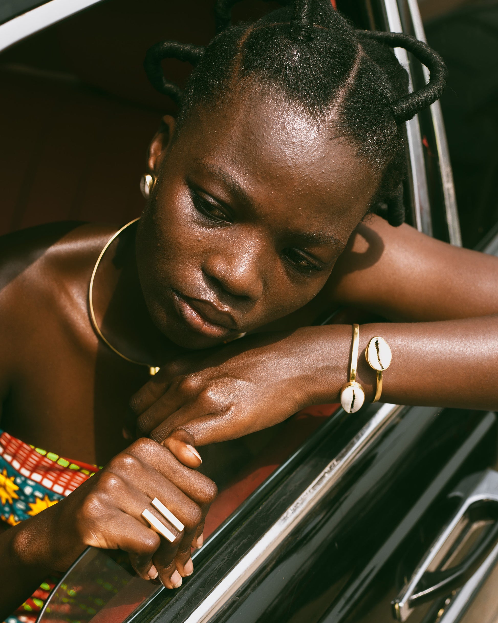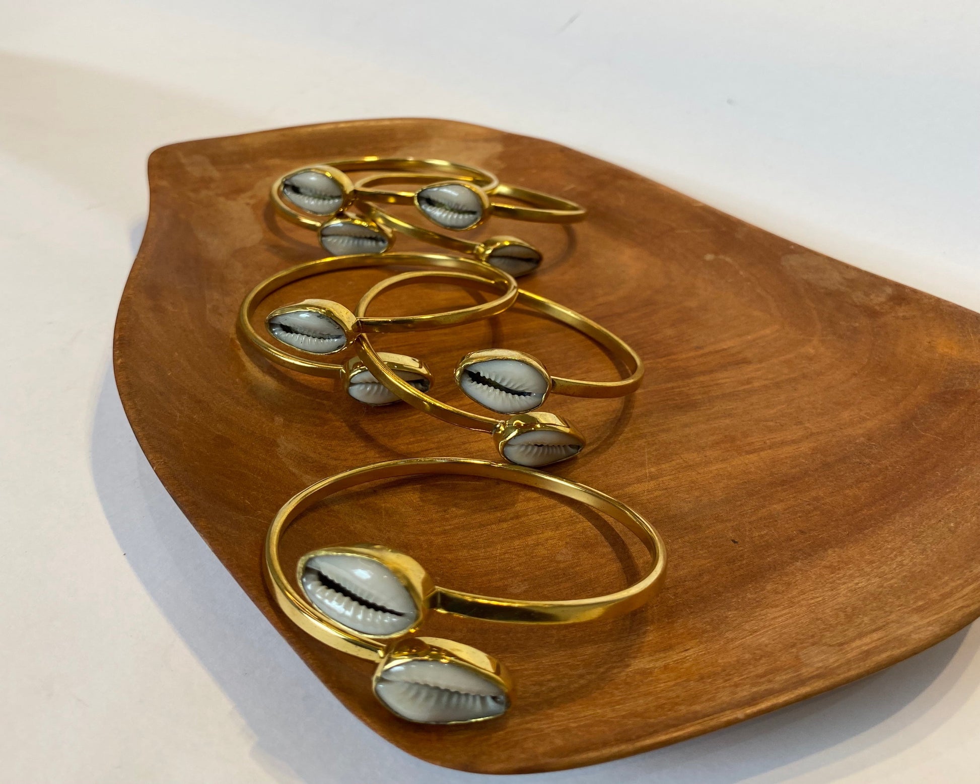 Cowrie in the African culture, represents prosperity and destiny. This is made in collaboration with a community of talented artisans and creatives from Africa who represent the continent’s diversity and potential. The bangle handmade by these talented artisans in Africa, is a classic piece of a natural cowrie shell adjustable bangle and adjustable cowrie brass ring.