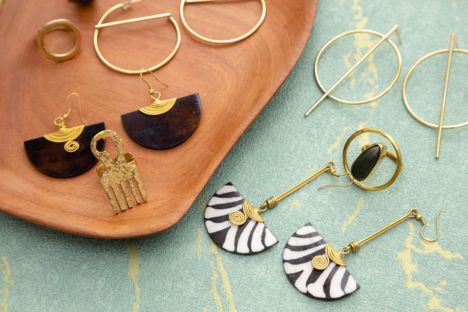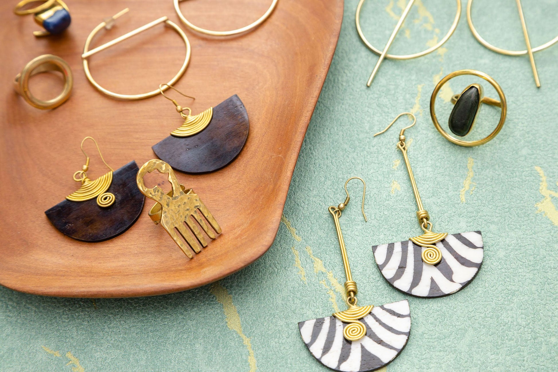 These lightweight, elegant earrings are perfect for every day wear – you’ll hardly know you have them on. Made from recycled brass. Handcrafted with incredible attention to detail, the flyn brass earrings are handcrafted in Africa. Shiku made these with care, love and passion so that it can be felt by the wearer and absolutely affect his/her energy and life positively. Wear these statement earrings with pride, knowing they improve the lives of artisans in Africa.