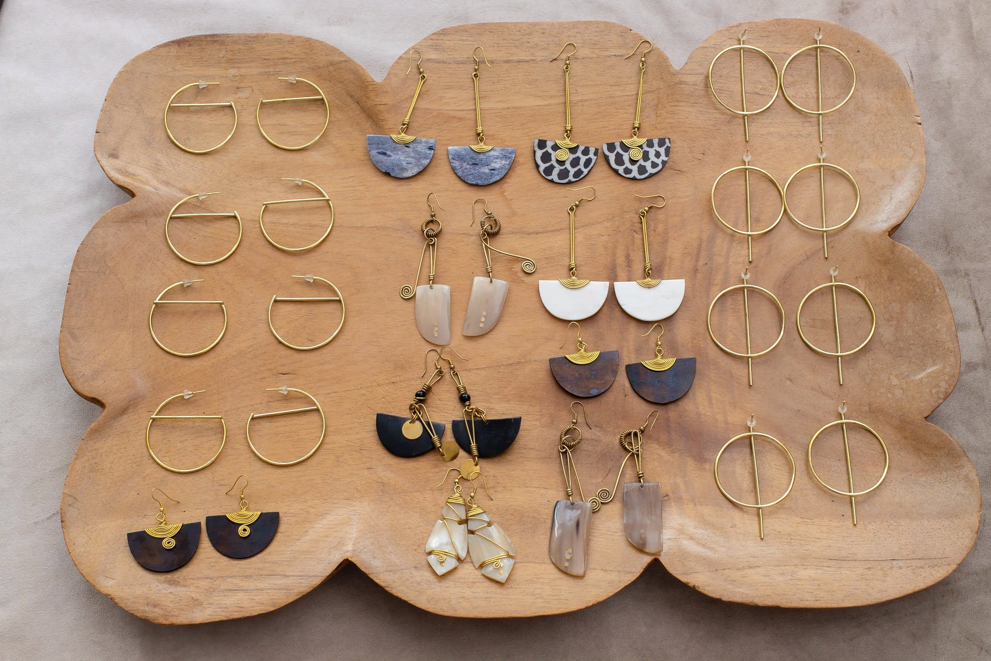 These lightweight, elegant earrings are perfect for every day wear – you’ll hardly know you have them on. Made from recycled brass. Handcrafted with incredible attention to detail, the flyn brass earrings are handcrafted in Africa. Shiku made these with care, love and passion so that it can be felt by the wearer and absolutely affect his/her energy and life positively. Wear these statement earrings with pride, knowing they improve the lives of artisans in Africa.
