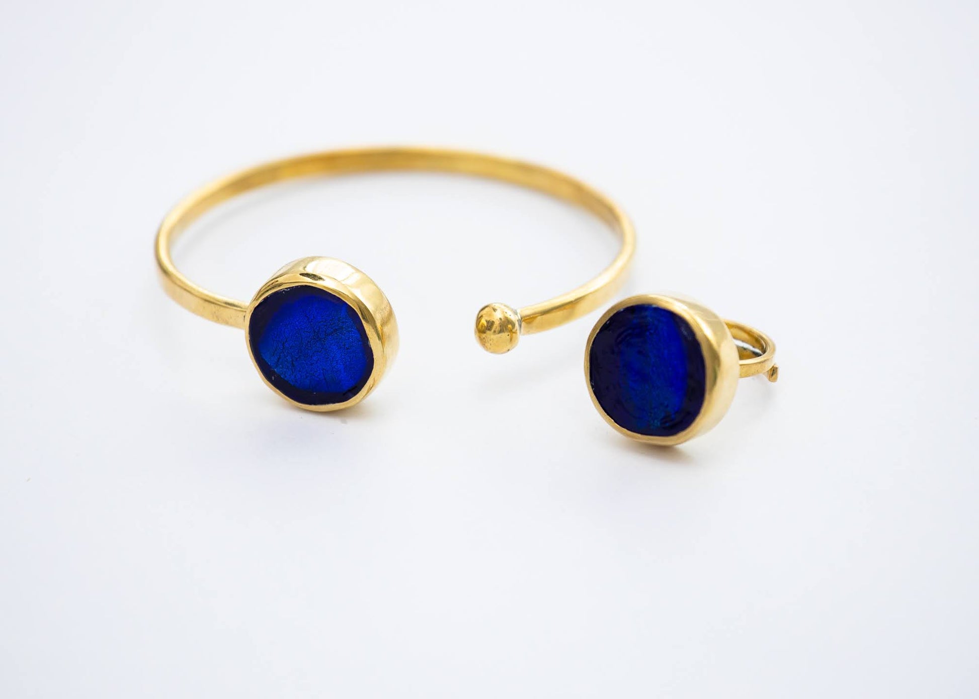 Viva in Swahili represents, the nature of longevity. The blue gemstones portrays a heart of loyalty, honesty and royalty. This bangle with ring carries an aura of confidence, and gives a touch of spark to your appearance. Our team of jewelry artisans are a wonderful example of this, and we are happy to be able to support them in their journey. Every Safi purchase provides free skill training, consistent employment, and resources for artisans through the Safi craft kit web app.