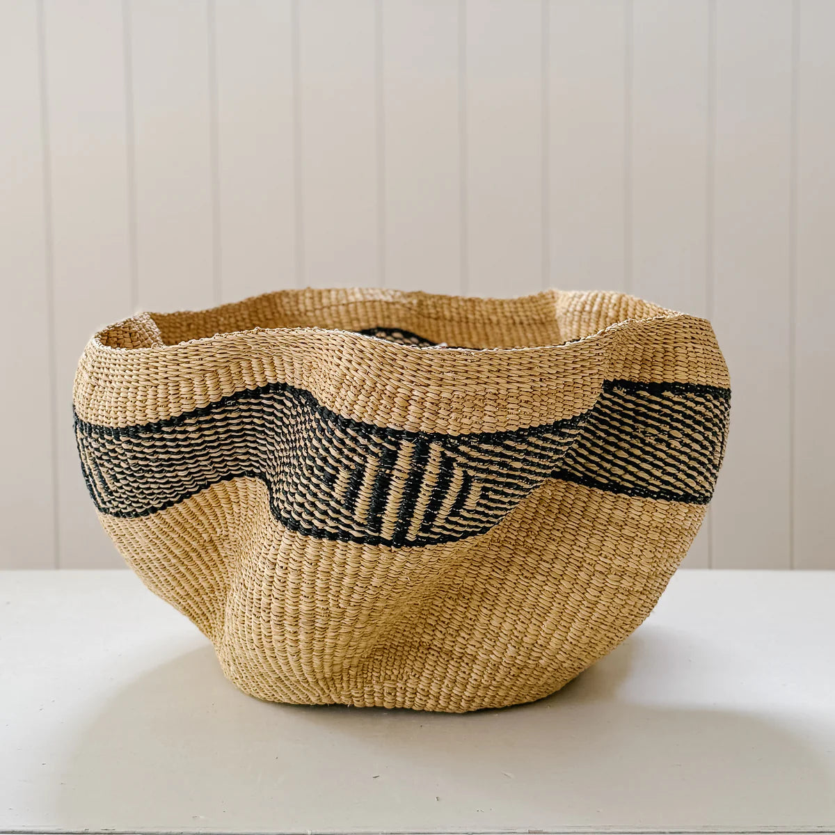 The wave Bolga Basket is a vibrant and functional work of art, handcrafted by the indigenous Gurune people of Bolgatanga—the craft hub of Ghana. Traditionally used as colanders for separating millet from water, these baskets showcase exceptional weaving techniques passed down through generations.