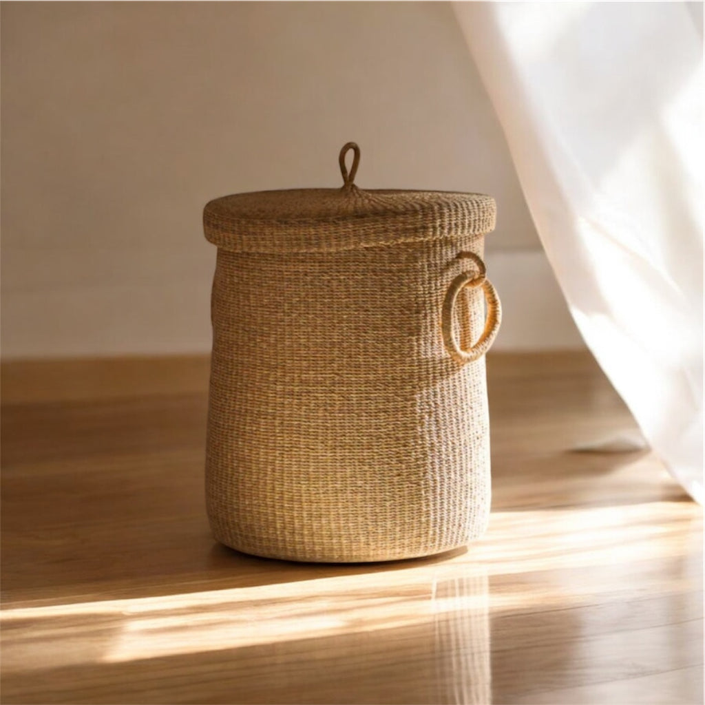 Each basket is one of a kind, featuring rich texture, color, and character unique to the hands that made it. Whether used in a bedroom, bathroom, nursery, or laundry room, it adds a warm, handmade touch to your space.