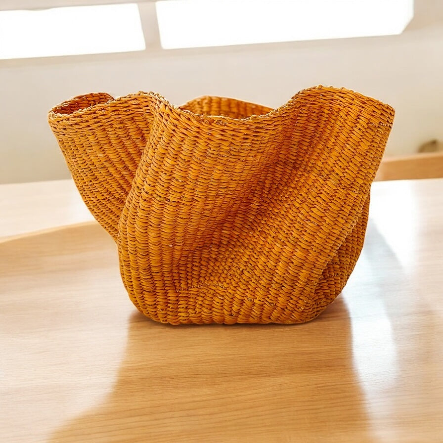 The wave Bolga Basket is a vibrant and functional work of art, handcrafted by the indigenous Gurune people of Bolgatanga—the craft hub of Ghana. Traditionally used as colanders for separating millet from water, these baskets showcase exceptional weaving techniques passed down through generations.