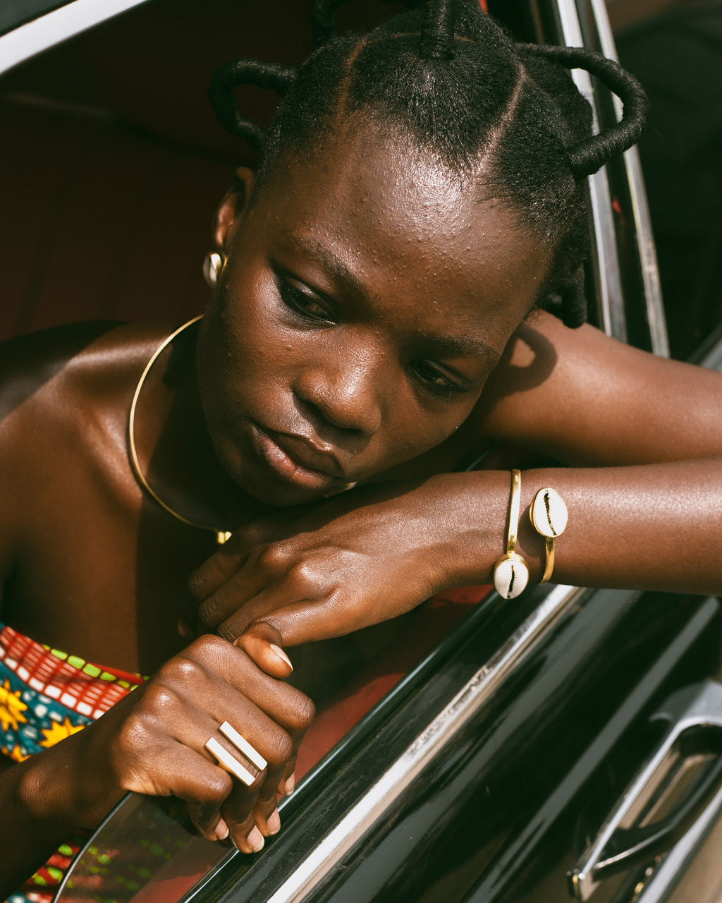 Cowrie in the African culture, represents prosperity and destiny. This is made in collaboration with a community of talented artisans and creatives from Africa who represent the continent’s diversity and potential. The bangle handmade by these talented artisans in Africa, is a classic piece of a natural cowrie shell adjustable bangle and adjustable cowrie brass ring.