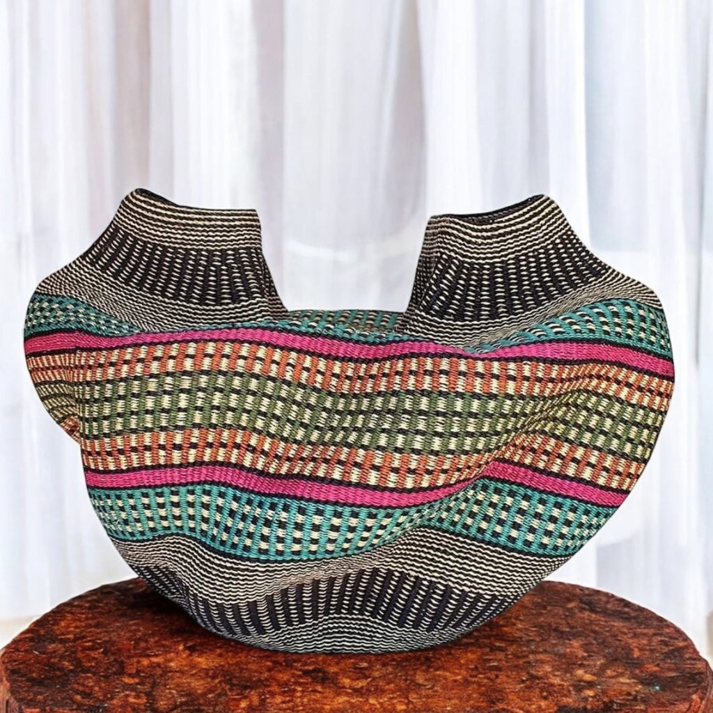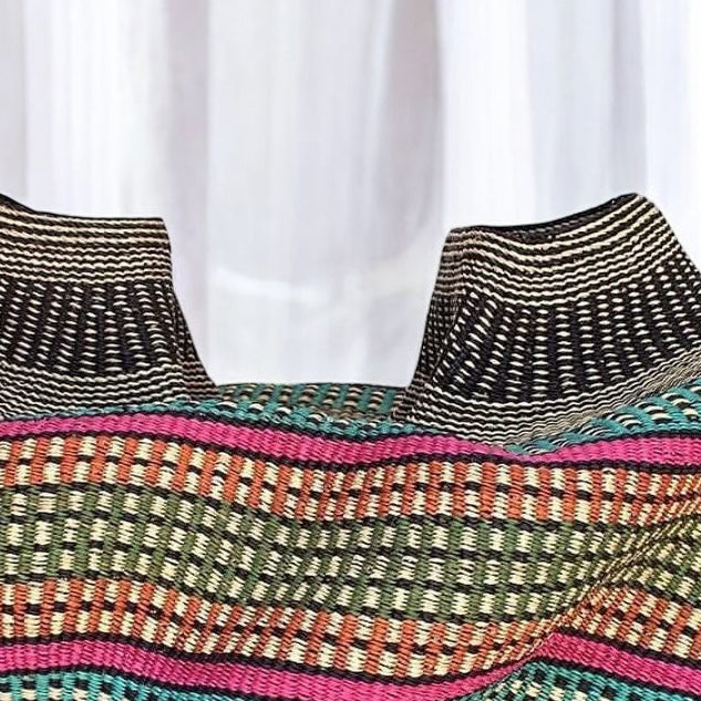 This decorative basket makes a wonderful gift and a beautiful addition to your home! Use it to store everyday essentials or showcase your favorite houseplants. These versatile, handwoven baskets are both stylish and functional, bringing a natural touch to any space. Display them individually or pair them with other baskets for a greater impact. Each piece is meticulously handcrafted by artisans in Ghana, and every purchase helps empower our artisan communities.