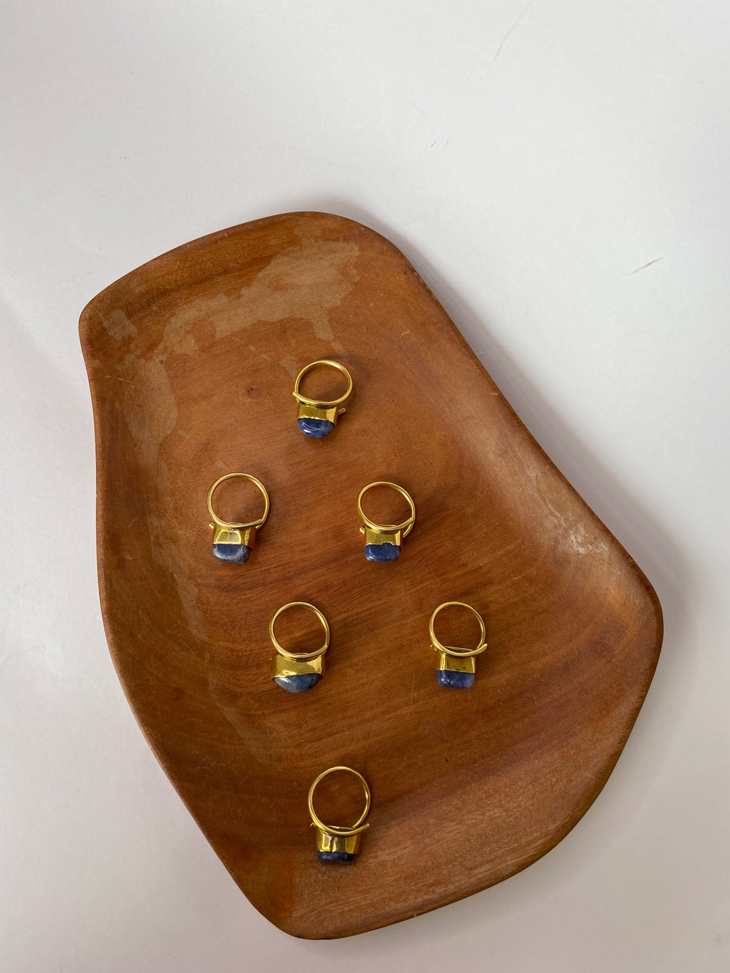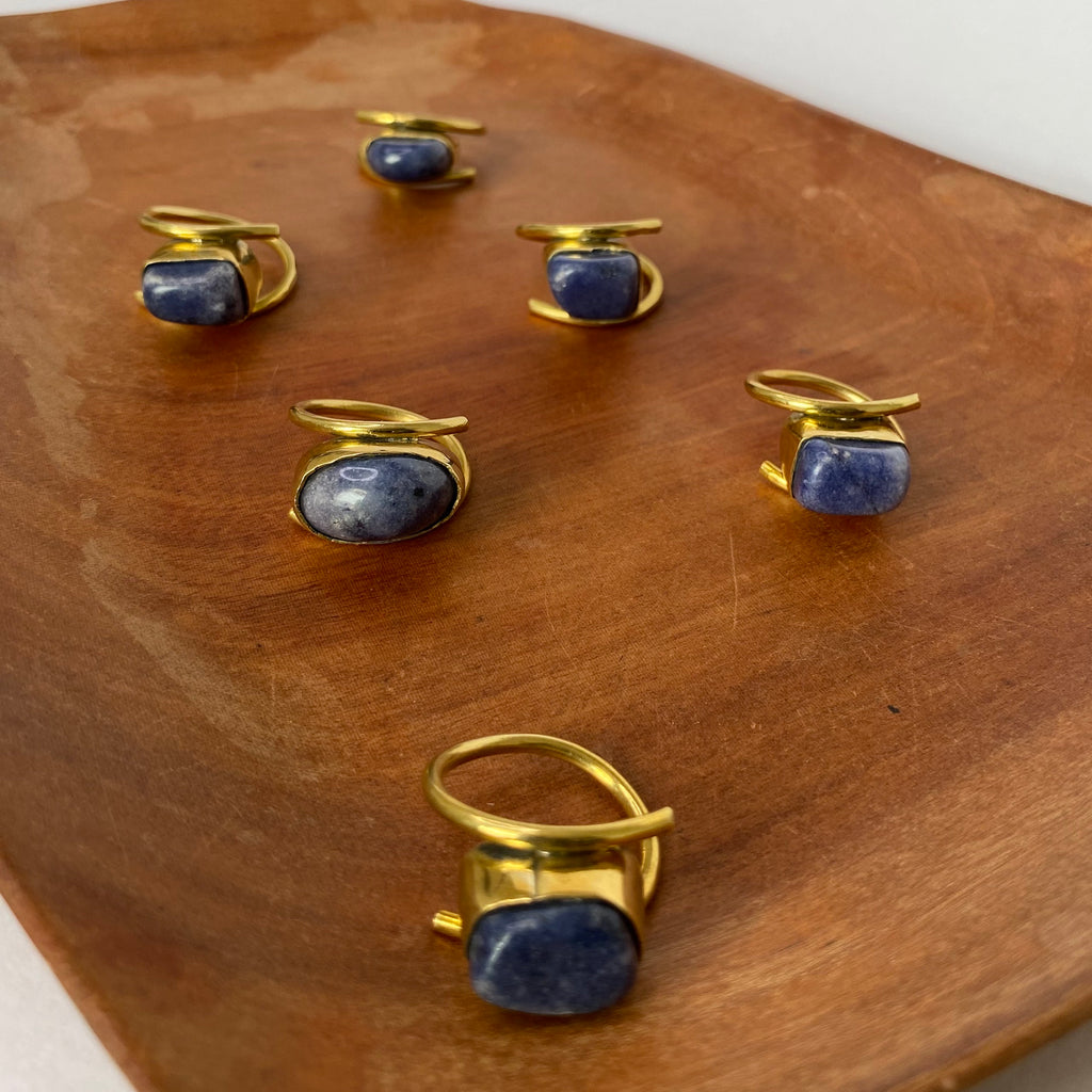 Spectacular! The fashionable ring is made from recycled brass, gilded with round semi-precious stone of superior quality, from Kenyan manufacture. It is easily adjustable and dresses your finger with a beautiful look. Perfect for all special occasions and events. The ring can be customized on request  and design.