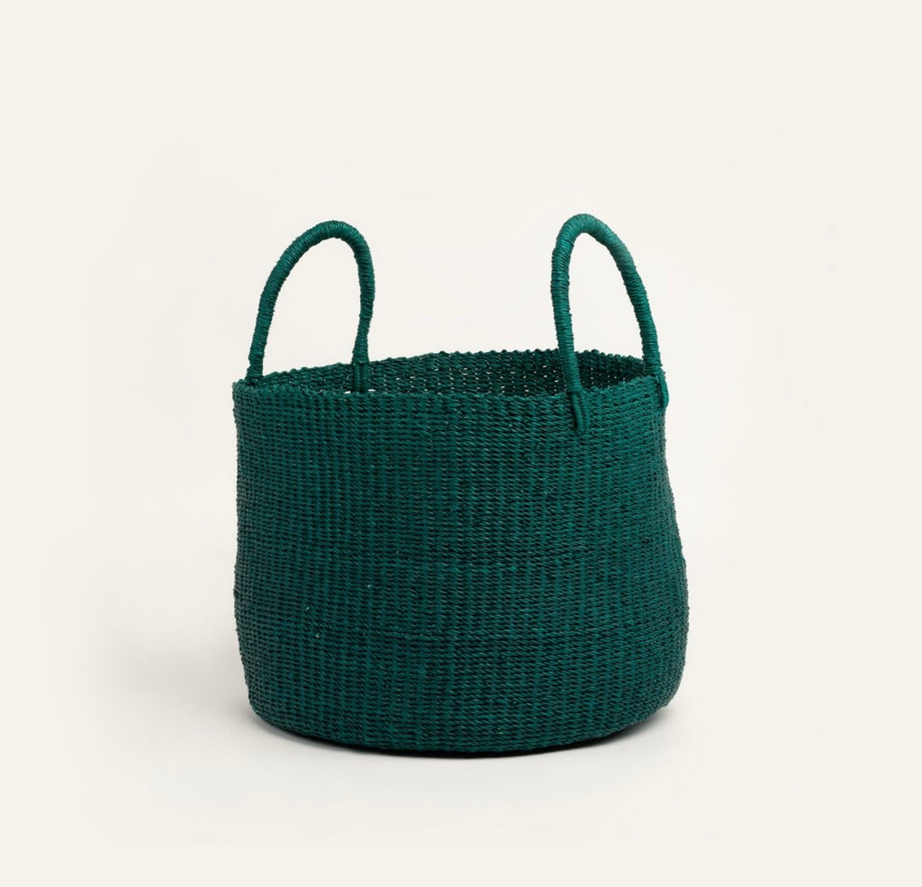 Handwoven Green Laundry Basket